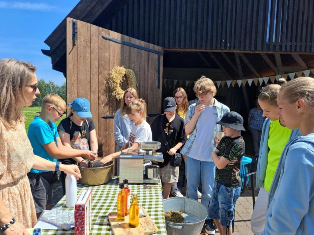 Stovyklos metu vaikai lankėsi Linos Noreikaitės-Rimkienės ir Valdo Rimkaus augalininkystės ūkyje, kur dalyvavo edukacijose „Mažo grūdo istorija“ ir „Šeivamedis“. Tai buvo gyvas pažintinis procesas, kur vaikai galėjo sužinoti, kaip užauginami grūdai, kaip kuriami sveikatai naudingi produktai, iš kur atsiranda žaliavos maistui. Tokie patyrimai neabejotinai skatina vaikų smalsumą, pagarbą žemdirbio darbui ir supratimą apie tvarią gamybą.