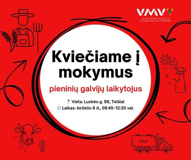 Šie mokymai – tai dalis VMVT tęsiamo regioninių mokymų ciklo, skirto pieninių galvijų laikytojams visoje Lietuvoje. Juose bus aptariami ne tik higienos, biosaugos ir paramos klausimai, bet ir dalinamasi įvairiais praktiniais patarimais bei atsakoma į ūkininkams rūpimus klausimus.