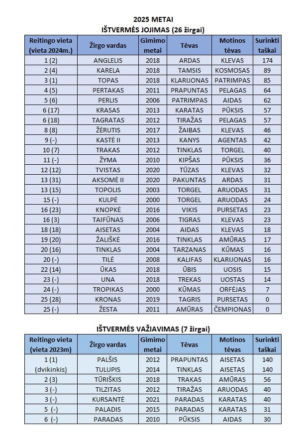 Žemaitukų veislės žirgai ir toliau demonstruoja aukštus sportinius rezultatus, išskirtinę ištvermę bei stabilumą, o šie reitingai – svarbus įvertinimas veisėjų, savininkų ir sportininkų darbui.
