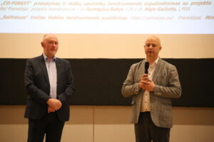 Taip pat pristatytas tarptautinis projektas „CO-FOREST“, kurio tikslas – stiprinti bendradarbiavimą ir tvarias praktikas miškų sektoriuje.